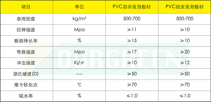 歐格PVC發(fā)泡板的表觀密度、拉伸強度、斷裂伸長率、彎曲強度、沖擊強度、邵氏硬度(D)、維卡軟化點、吸水率及燃燒性能的指標均符合標準。